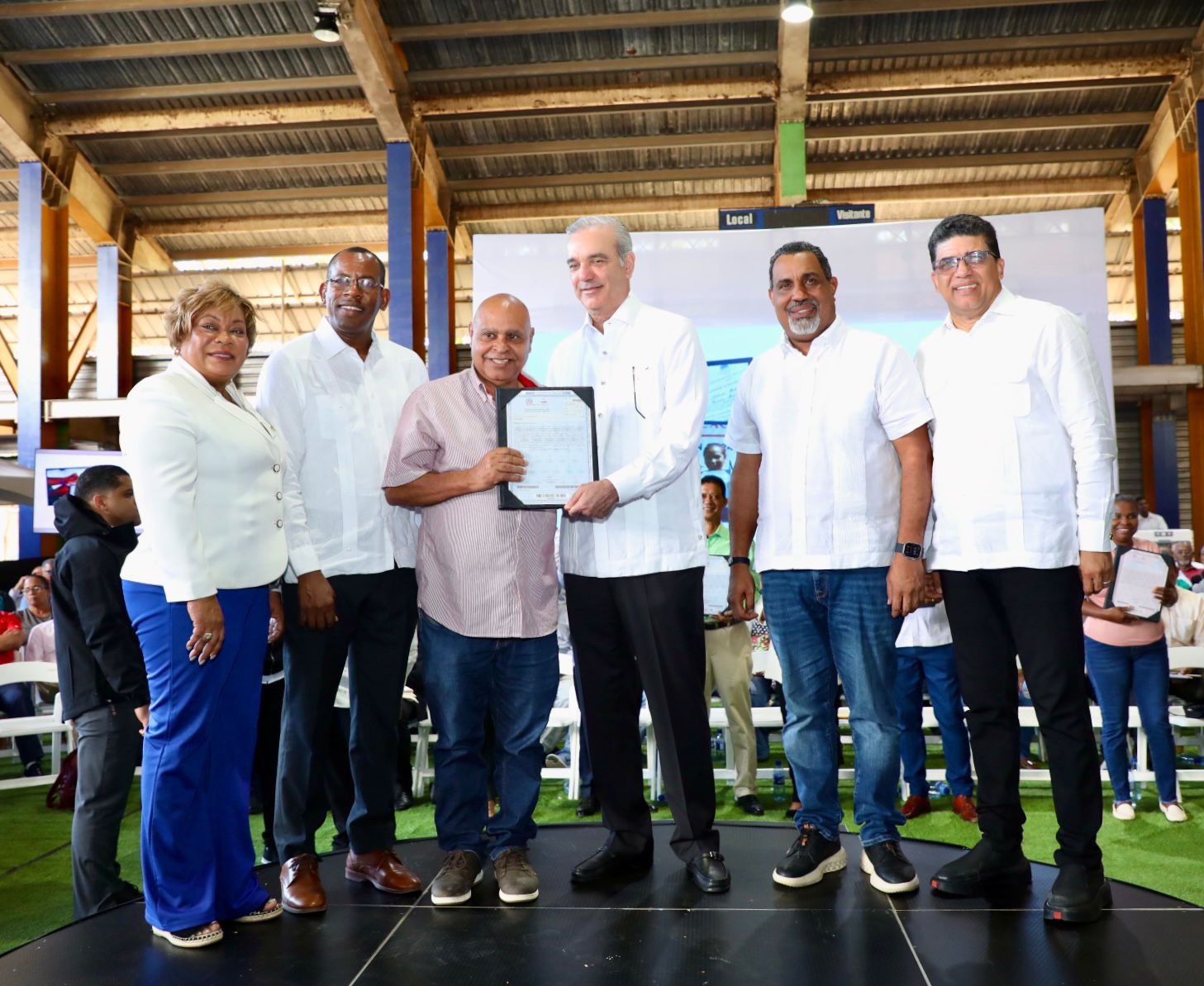 En el acto que fue organizado por el Ministerio de la Vivienda y Edificaciones (MIVED) y la Unidad Técnica Ejecutora de Titulación de Terrenos del Estado, estuvieron presentes la gobernadora de la provincia Santo Domingo, Lucrecia Santana; el alcalde del municipio de Santo Domingo Este, Dio Astacio y los directores de Bienes Nacionales y honorífico del Consejo Estatal del Azúcar (CEA) y Corde, Rafael Burgos Gómez y de Catastro Nacional, Héctor Pérez Mirambeaux.