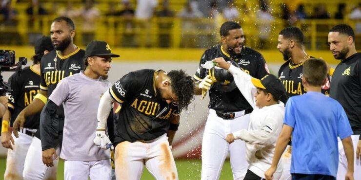 Las Águilas empataron a tres carreras en el octavo inning cuando Rodolfo Amador, bateando de emergente, conectó sencillo; Fernando Peguero entró como corredor emergente, avanzó a segunda por sacrificio de Steward Berroa, Geraldo Perdomo recibió base por bolas y Cristhian Adames disparó un sencillo remolcador.