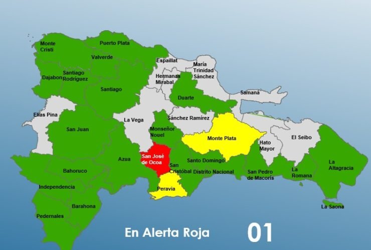 Las provincias en alerta roja son San José de Ocoa. En alerta amarilla están Monte Plata y Peravia.