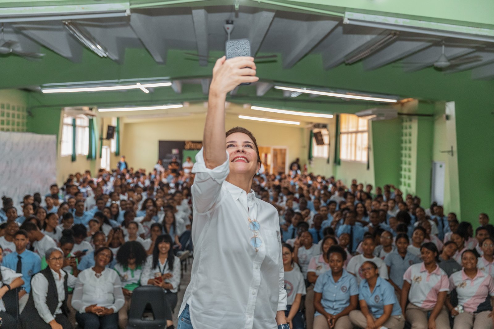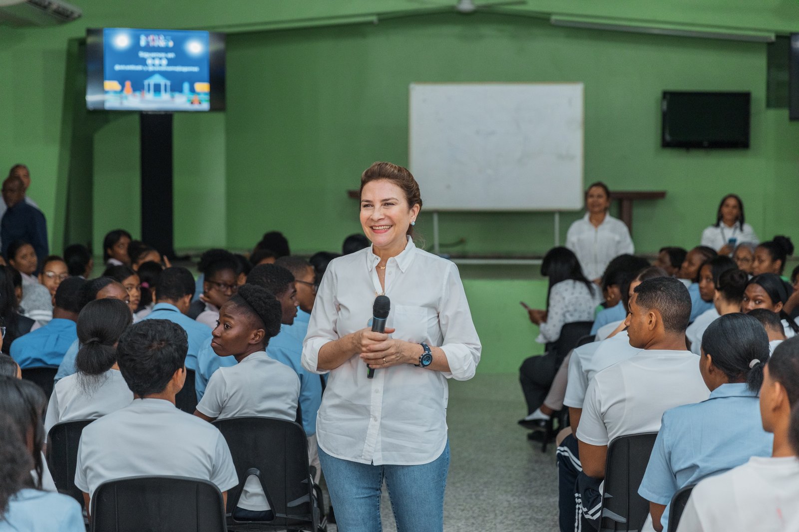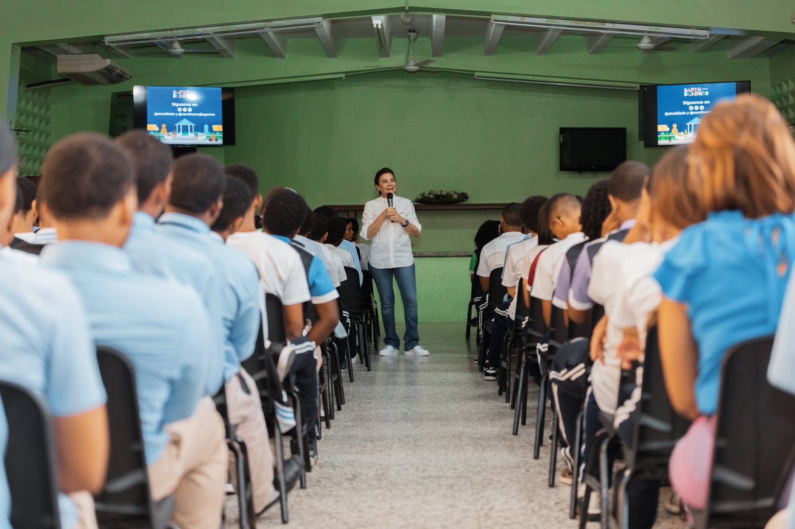 RZ NOTICIAS, SANTO DOMINGO.- Carolina Mejía llevó a estudiantes del Instituto Politécnico Profesor Víctor Rafael Estrella Liz, conocido como “La Perito”, un conversatorio sobre el funcionamiento de la Alcaldía del Distrito Nacional, donde aprovechó para promover entre los jóvenes la buena conducta ciudadana.