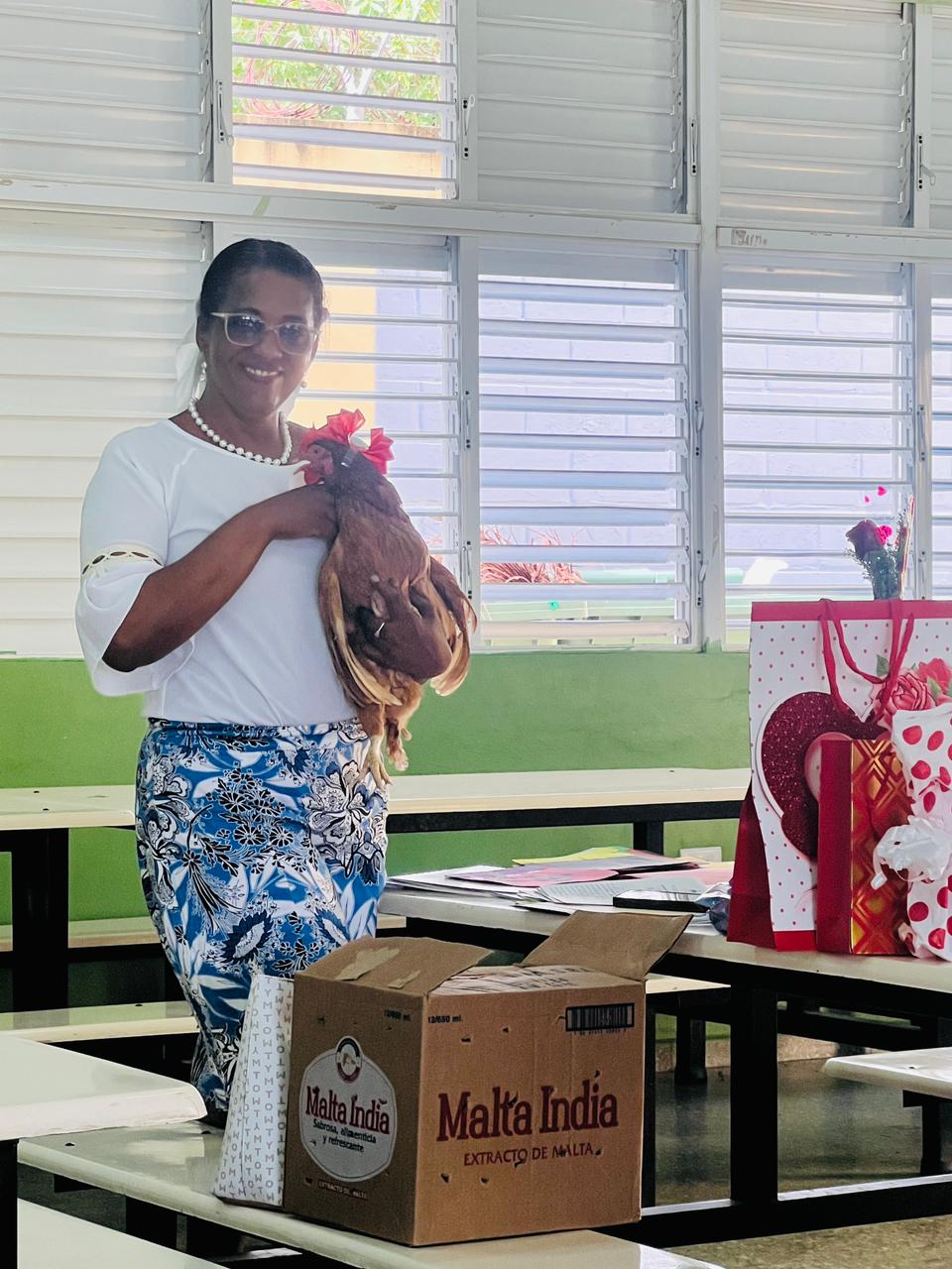 RZ NOTICIAS, PUERTO PLATA. – Un estudiante le regaló una gallina a su profesora el día de entrega de calificaciones del año escolar en Puerto Plata.