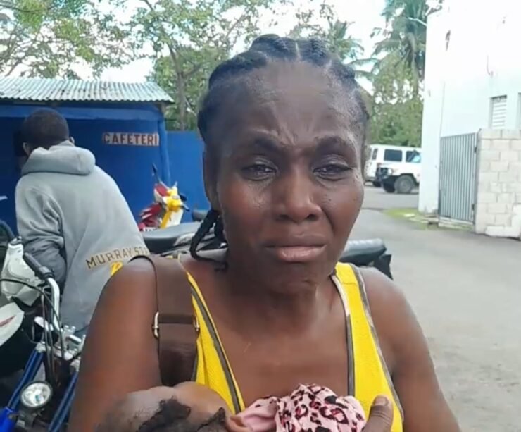 RZ NOTICIAS, HATO MAYOR DEL REY.- Con uno de sus hijos en brazo y lágrimas en sus ojos, una ciudadana haitiana se presentó este sábado ante el cuartel policial de Hato Mayor del Rey donde había sido llevado su esposo tras ser arrestado por agentes de la Dirección General de Migración (DGM) por no estar al día con sus documentos personales.